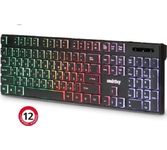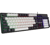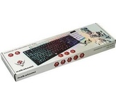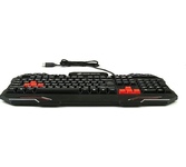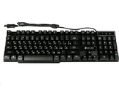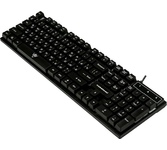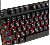 Клавиатура игровая проводная, мультимедийная, интерфейс USB, корпус черный матовый пластик, количество клавиш - 104, клавиши Windows, мультимедиа-клавиши комбинированы с F-клавишами, клавиши непрозрачные, символы просвечиваются изнутри, регулируемый угол наклона, длигна кабеля - 1,5 м.