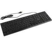 Клавиатура проводная, мультимедийная, интерфейс USB, корпус черный матовый пластик, количество клавиш - 114 (104 основных + 10 мультимедыных), подставка под запястья, регулируемый угол наклона, длина кабеля - 1,5 м.