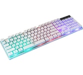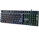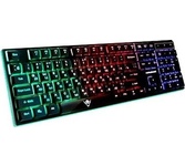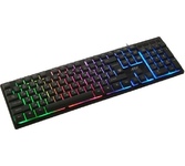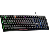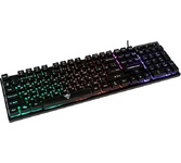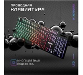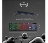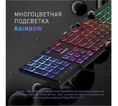 Клавиатура игровая, проводная, интерфейс подключения - USB, радужная подсветка, количество кнопок - 104, увеличенная площадь клавиш-модификаторов (Ctrl, Shift), клавиш Enter и BackSpace, BackSpace, влагоустойчивая конструкция, длина кабеля - 1,5 м.