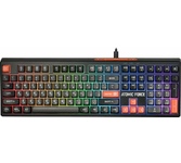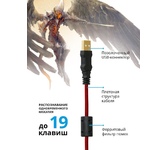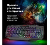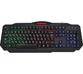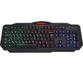 Клавиатура геймерская, проводная, интерфейс USB, специальные игровые функции: блокировка системных клавиш Windows и переключение стрелок курсора на кнопки WASD*, 3 цвета подсветки, клавиши быстрого доступа, регулируемая яркость и частота опроса, металлическое дно, ферритовый фильтр помех.