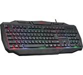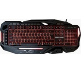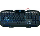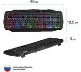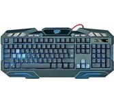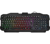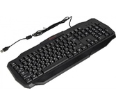 Мультимедийная игровая клавиатура с подсветкой клавиш, проводная, интерфейс - USB, корпус - черный текстурированный пластик, количество клавиш - 120, клавиши Windows, мультимедиа-клавиши - блок в верхнем ряду над F-клавишами, 3 уровня яркости подсветки, регулируемый угол наклона, кабель с ферритовым фильтром, длина кабеля - 2,0 м, габаритные размеры (В*Ш*Г, мм) - 515*215*32