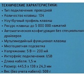 Основные характеристики ТипКлавиатура Мультимедийные дополнительные клавишиДа Для геймеровДА Длина кабеля1.5 м Разъемы, интерфейсы ИнтерфейсUSB Размеры, вес, цвет Размеры клавиатуры358x35x131.5мм Цветчерный Вес (клавиатуры)0.38 кг Цвет корпуса клавиатурычерный Цвет клавишчерный Цвет английских буквпрозрачный Цвет русских буквпрозрачный Особенности Подсветка клавишДа Защита от попадания жидкостейДа Дизайн клавишквадратные Клавиатура с русскими буквамиДА ОсобенностиАвтоматическая конфигурация без специальных драйверов. 6 одновременных нажатий с функцией Anti-Ghosting. Подсветка многоцветная пульсирующая. Настройка скорости пульсации и яркости подсветки. Срок гарантии12 мес.