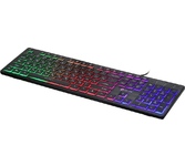 Клавиатура проводная, интерфейс USB, полноразмерная раскладкой с цифровым блоком и клавишами для управления мультимедиа, радужная подсветка, slim дизайн, материал корпуса пластик, длина кабеля - 1,5 м.