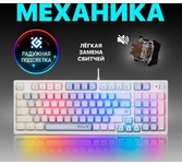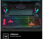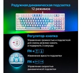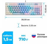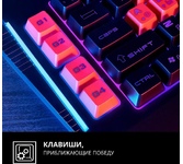 Красные свитчи Игровая подсветка - Подсветка символов и клавиш красного цвета 16 режимов подсветки Регулируемая яркость подсветки - Меняйте яркость подсветки с помощью комбинации клавиш FN+Стрелки вверх/вниз Управление скоростью динамической подсветки FN+стрелки влево/вправо Функция Anti-ghost - 25 клавиш: Q, A, Z, W, S, X, E, D, C, R, F, V, T, G, B, M, Space, Tab, Ctrl, CAPS, Shift, ^v Аппаратная блокировка клавиши WIN во время игры - Используйте комбинацию клавиш "FN+WIN" Обмен функциями между клавишами "^" и "WASD" - Используйте комбинацию клавиш "FN+W" Технология Double injection - Символы не сотрутся, так как клавиши отлиты из двух цветов пластика: черный для области кнопки и белый/прозрачный для символов Резиновые ножки предотвращают скольжение по поверхности стола Угол наклона клавиатуры регулируется с помощью ножек Повышенная износостойкость Для того, чтобы восстановить настройки по умолчанию, используйте сочетание клавиш FN+ESC