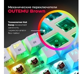 Аппаратная блокировка клавиши WIN во время игры Программируемая RGB подсветка Технология Hot Swap Влагоустойчивая конструкция клавиатуры Позолоченный USB-коннектор Технология Double injection
