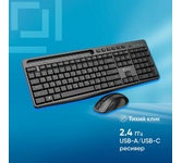 Интерфейс подключения: USB. Тип соединения клавиатуры: проводной. Питание клавиатуры от: по шине. Тип мыши: оптическая. Разрешение сенсора максимальное: 1200. Количество кнопок мыши: 3. Питание мыши: по шине. Длина провода клавиатуры: 1.5. Длина провода мыши: 1.5. Дизайн клавиш: квадратные. Цвет английских букв: белый. Цвет русских букв: белый. Защита от попадания жидкостей: есть. Поддержка разрешений: 1200. Частота опроса USB порта: 125 Гц. Дизайн мыши: для правой и левой руки. Особенности мыши: мышь бесшумная. Цвет клавиш клавиатуры: черный. Габариты упаковки (ед) ДхШхВ: 0.53x0.16x0.04. Вес упаковки (ед): 0.74. Гарантия: 12 мес.. Цвет корпуса клавиатуры: черный. Цвет мыши: черный. Размеры клавиатуры: 447 х 130 х 27 мм. Размеры мыши: 120 х 63 х 38 мм. Органы управления: колесо прокрутки, цифровой блок. Питание мыши: по шине. Мышь: оптическая, 1200 dpi, количество кнопок 3. Питание клавиатуры: по шине. Тип соединения: проводной, USB. Цвет букв: русских - белый, английских - белый