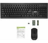 12 горячих клавиш; «Ножничный» (ноутбучный) механизм клавиш с точным откликом; Плоские как на ноутбуке клавиши для максимального комфорта при печати; Тихий ход клавиш; Прочная конструкция с металлической пластиной; Нестираемое металлизированное покрытие на клавиатуре и мыши; Нескользящие резиновые «ножки», Размеры клавиатуры 439*135*23 мм; Мышь: DPI 800/1200/1600; Бесшумные кнопки; Металлическое колесо прокрутки; Кнопка вкл/выкл для экономии энергии; Размеры мыши 108*61*30 мм; Диапазон действия: до 10 м