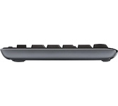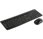 Набор беспроводной (клавиатура+мышь), интерфейс USB; клавиатура - классическая раскладка, мембранная, количество клавиш - 104, влагозащитная конструкция, тихий ход клавиш; мышь - оптическая, количество конопок - 3, разрешение - 1000 dpi, радиус действия - 10 м; комплект устойчив к механическим воздействиям.