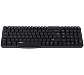 Интерфейс подключения: USB. Тип соединения клавиатуры: беспроводной. Питание клавиатуры от: 1xAAA. Тип мыши: оптическая. Разрешение сенсора максимальное: 1600. Питание мыши: 1xAA. Радиус действия: 10. Мультимедийные дополнительные клавиши: есть. Дополнительные интернет-клавиши: есть. Дизайн клавиш: квадратные. Цвет английских букв: белый. Цвет русских букв: белый. Защита от попадания жидкостей: есть. Поддержка разрешений: 1600. Дизайн мыши: для правой и левой руки. Возможность работы на покрытиях: на любой поверхности. Индикация заряда на клавиатуре: есть. Цвет клавиш клавиатуры: черный. Особенности комплекта: Беспроводной комплект начального уровня. Клавиатура поддерживает мультимедийный функционал клавиш F1 - F12, имеет выдвижные ножки для регулировки угла наклона и высокий ресурс клавиш. Мышь оснащена 3 клавишами, тефлоновыми ножками и подходит для использования правой и левой рукой.. Тип беспроводного соединения: Радио. Габариты упаковки (ед) ДхШхВ: 0.515x0.165x0.04. Вес упаковки (ед): 0.68. Клавиатура с