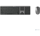 Набор беспроводной (клавиатура+мышь), мультимедийный, интерфейс USB; клавиатура - классическая раскладка, мембранная, количество клавиш - 112, мультимедийных - 8; мышь - оптическая, количество конопок - 3, разрешение - 1000 dpi, радиус действия - 10 м; дизайн комплекта выполнен в едином стиле.