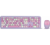 Цвет мыши: фиолетовыйТип сенсора: ОптическийКоличество кнопок мыши: 3Радиус действия: до 10 мПитание мыши: 1 батарейка ААИнтерфейс подключения: USBЦвет клавиатуры: белыйПитание клавиатуры: 1 батарейка ААА