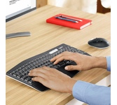 Все проходит, комфорт остаетсяКомплект MK850 Performance с широкими функциональными возможностями — это совершенно новый уровень удобства и производительности. Амортизирующая подставка для запястий, клавиатура изогнутой формы и эргономичная мышь обеспечат комфорт при длительной работе. Переключаясь между экранами при помощи клавиатуры и мыши, вы без труда справитесь с множеством задач.