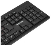 Набор (клавиатура+мышь) беспроводной, интерфейс USB; клавиатура - количество клавиш - 104, функциональных - 12; мышь - оптическая, количество кнопок - 4, колесо прокрутки, изменяемое разрешение сенсора - 1000/1200/1600 dpi, радиус действия - до 10 м.