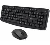 Проводной набор (клавиатура+мышь), клавиатура - количество калвиш - 104, интерфейс USB, двухцветная раскладка, длина кабеля - 1,5 м; мышь - проводная оптическая, количество кнопок - 3, разрешение 1000 dpi , цвет - черный.