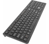 Недорогой беспроводной комплект для повседневной работы. В набор входит клавиатура с полноразмерной раскладкой и возможностью управления мультимедийными программами с помощью кнопки FN, а также мышь симметричной формы. Мышь имеет 3 разрешения: 1000-1200-1600 dpi. Комплект работает от одного приемника.