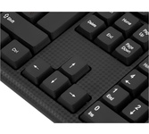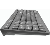 Проводной набор (клавиатура+мышь), клавиатура - количество калвиш - 104, интерфейс USB, двухцветная раскладка, длина кабеля - 1,5 м; мышь - проводная оптическая, количество кнопок - 3, разрешение 1200 dpi , цвет - черный.