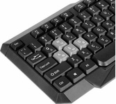 Комплект беспроводной ( клавиатура+мышь ) , мультимедийный , двухцветная раскладка клавиатуры; 12 мультимедийных клавиш; 8 цветных клавиш для игр; мышь - оптическая, количество кнопок - 3, разрешение - 1000 dpi , радиус действия - до 10 м.