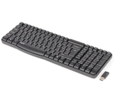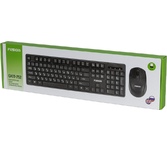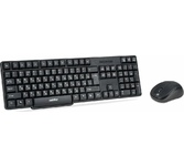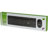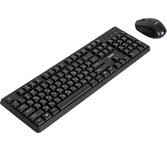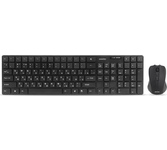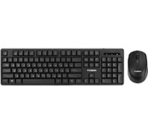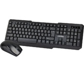 Комплект беспроводная клавиатура + мышь. Состав: беспроводная клавиатура, Количество клавиш: 104, Беспроводное соединение с частотой 2.4 GHz, Интерфейс: USB2.0, Раскладка клавиатуры: английская/русская, Тип клавиатуры - мембранная, Рабочее расстояние: 10 м Питание: 2 * батарейки типа ААА, в комплект не входят, Размеры, мм: 436*136,6*28, Вес, г: 435 Цвет: черный, Совместимость с ОС: Windows, MacOS. Беспроводная оптическая мышь, Количество кнопок: 3, Беспроводное соединение с частотой 2.4 GHz, Интерфейс: USB2.0, Разрешение на дюйм DPI: 1000, Рабочее расстояние: 10 м, Питание: 1 * батарейка типа AАА, в комплект не входят Размер мм: 110 * 63 * 35, Вес, г: 45, Цвет: черный, Совместимость с ОС: Windows, MacOS