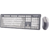 Интерфейс подключения: USB, Тип клавиатуры: Мембранная, Кол-во клавиш 104шт, Питание (клавиатура): 2 хAAA, Радиус действия: 0-10м, Рабочая частота: 2,4 ГГц, Количество дополнительных клавиш (функций): 12 (+FN),Количество кнопок (мышь): 3 + колесо-кнопка, Тип сенсора: IR-лазерный, Разрешение: 1000/1500/2000 dpi, Системные требования для ПК: Windows 2000/XP/Vista/7/8/10, Mac OS X10, Питание: 2 х AAA.