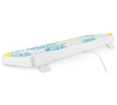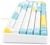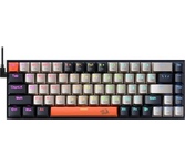 Компактная игровая механическая клавиатура на тихих переключателя SNK White, с прозрачными кейкапами и RGB подсветкой. Модель имеет 3 режима подключения: проводной, беспроводной по радио-каналу 2.4ГГц (с помощью USB-адаптера), а также подключение по Bluetooth. Также клавиатура имеет кнопку-регулятор для управления громкостью и подсветкой.