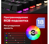 Механические переключатели OUTEMU Blue Программируемая RGB подсветка 18 режимов динамической подсветки Повышенная износостойкость - Ресурс нажатия клавиш - до 50 млн Позолоченный USB-коннектор - Позолоченное напыление обеспечивает лучшую проводимость, меньшее сопротивление и окисляемость Аппаратная блокировка клавиши WIN во время игры Распознает одновременное нажатие 104 клавиш Влагоустойчивая конструкция клавиатуры Регулируемая яркость подсветки Высокопрочный долговечный кабель Звонкий звук / щелчок переключателей Технология Hot Swap