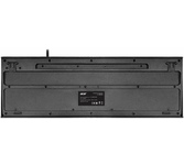 Клавиатура проводная, мембранная, интерфейс USB, количество клавиш - 104, покрытие устойчиво к возникновению царапин, не оставляет следов от прикосновения пальцев, влагозащитная, регулируемый угол наклона, длина кабеля - 1,5 м .