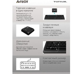 Общие характеристики Бренд A4TECH Модель Fstyler FK10 Тип соединения проводная Интерфейс USB Длина кабеля 1.5 м Клавиши клавиатуры Дизайн клавиш квадратные Клавиатура с русскими буквами ДА Цвет русских букв белый Цвет английских букв белый Количество клавиш 104 Конструкция клавиатуры Обычная/тонкая обычная Защита от попадания жидкостей присутствует Комплектация Полную комплектацию товара уточняйте у производителя Размеры, цвет Цвет черный Размеры клавиатуры (ШхВхТ) 456 х 24 х 156 мм Вес 0.534 кг