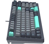 Компактная игровая механическая клавиатура на тихих переключателя SNK White, с прозрачными кейкапами и RGB подсветкой. Модель имеет 3 режима подключения: проводной, беспроводной по радио-каналу 2.4ГГц (с помощью USB-адаптера), а также подключение по Bluetooth. Также клавиатура имеет кнопку-регулятор для управления громкостью и подсветкой.