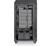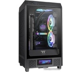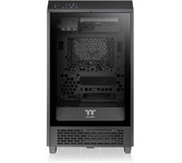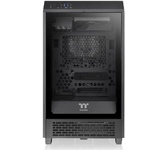 Корпус Thermaltake The Tower 200 черного цвета имеет оригинальный дизайн и компактные размеры. Его конструкция предполагает сборку производительного игрового ПК. На стальном корпусе есть перфорация для улучшения вентиляции всех элементов ПК. Лицевая панель из закаленного стекла позволяет увидеть внутреннее оформление ПК с RGB-подсветкой. В корпусе есть место для видеокарты длиной до 380 мм. Чтобы исключить ее подвижность, используется специальный стабилизатор.