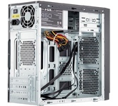 Miditower. Сталь (мм: 0.5). Тип блока питания: ATX. Форм-фактор материнской платы: ATX. Безынструментальный доступ к внутренним компонентам: Да. Количество внешних 5,25" отсеков: 1. Количество внутренних 3,5" отсеков: 2. Количество внутренних 2,5" отсеков: 2 (3 вместо 1 x 3.5"). Интерфейсы Порты ввода/вывода: Аудио 2 x 3.5мм (AC97). USB: 2. Расположение интерфейсов: В верхней части передней панели. Места для установки вентиляторов: На передней панели: 12 см x 2 или 14 см x 2. На задней панели: 12 см x 1. На боковой панели: 12 см x 1. Максимальная длина материнской платы, мм: 244. Максимальная высота вентилятора ЦП, мм: 155. Максимальная длина блока питания, мм: 210. Максимальная длина блока питания с приводом напротив, мм: 180. Максимальная длина видеокарты, мм: 320. Максимальная длина видеокарты с HDD напротив, мм: 250. Размеры: 195*415*385 мм.