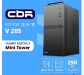 [Корпус] CBR Корпус mATX Minitower V205, без БП, 1*USB 3.0, 1*USB 2.0, HD Audio+Mic, ручка, каркас металл 1.8мм, Black [PCC-MATX-V205-WPSU]