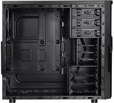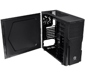 Если у пользователя есть навыки самостоятельной сборки компьютера, то он может воспользоваться корпусом ATX THERMALTAKE Versa H21. Модель выполнена в традиционном черном цвете из прочной стали и оснащается качественной системой вентиляции и фильтрами, защищающими от пыли. Для проведения монтажа можно воспользоваться специальными креплениями. Аккуратно уложить и закрепить провода и кабели можно на задней стенке.