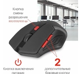 Мышь беспроводная, износостойкое UV-покрытие с эффектом Metallic; бесшумные клавиши; подходит для использования как правой, так и левой рукой; 3 уровня DPI: 800, 1200, 1600; радиус действия - до 10 м; 1 батарейка АА в комплекте.