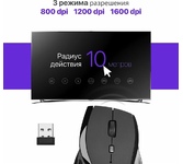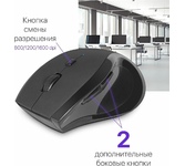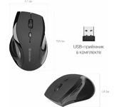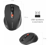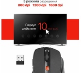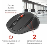 Мышь беспроводная, оптическая, сменное разрешение 800/1200/1600 dpi, количество кнопок: 5 +колесо прокрутки, интерфейс подключения USB, эргономичная форма, батарейка 1хАА (в комплекте), цвет - черный.