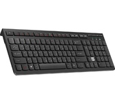 Клавиатура беспроводная, интерфейс подключения - USB, рабочая частота 2.4 ГГц, количество дополнительных клавиш (функций) 4 (+FN), увеличенная площадь клавиш-модификаторов (Ctrl, Shift), клавиш Enter и BackSpace, удобные закругленные клавиши,
