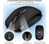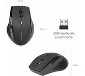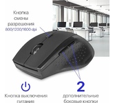 Мышь беспроводная оптическая, интерфейс USB, 5 клавиш+ колесо-кнопка, сменное разрешение сенсора 800/1200/1600 dpi, питание - 2 хAAA (в комплекте) цвет: черный.