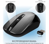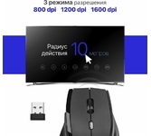 Мышь беспроводная, отпическая, интерфейс USB, количество кнопок - 3+ колесо прокрутки, изменяемое разрешение 800/1200/1600 dpi, цвет черный.