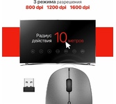 Беспроводная оптическая мышь, разрешение сенсора 800/1200/1600 dpi, кол-во кнопок: 4. Питание от батареек типа ААА - 2 шт. USB-ресивер.