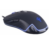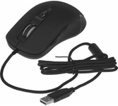 Мышь игровая, проводная, оптическая, интерфейс USB, количество кнопок - 6, колесо проктуртки, изменяемое разрешение - 800/1000/1600/2400 dpi, покрытие soft-touch, яркая подсветка корпуса, длина кабеля - 1,5м