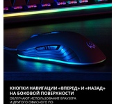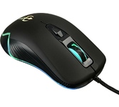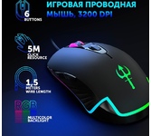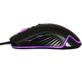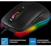 Мышь игровая, проводная, оптическая, интерфейс USB, 6 кнопок, колесо прокрутки, изменяемое разрешение - 1200/1600/2400/3200 dpi,2 дополнительные боковые кнопки, ферритовый фильтр помех, емкость аккумулятора - 500 мА ·ч, радужная подсветка, 5 настраиваемых кнопок, эргономичная форма обеспечивает удобный захват, бесшумные щелчки, тефлоновые ножки, длина кабеля - 1,2 м.