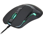 Мышь игровая, проводная, оптическая, интерфейс USB, 6 кнопок, колесо прокрутки, изменяемое разрешение - 1200/1600/2400/3200 dpi,2 дополнительные боковые кнопки, ферритовый фильтр помех, емкость аккумулятора - 500 мА ·ч, радужная подсветка, 5 настраиваемых кнопок, эргономичная форма обеспечивает удобный захват, бесшумные щелчки, тефлоновые ножки, длина кабеля - 1,2 м.