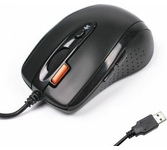 Длина соединительного провода оптической мыши A4TECH V-Track Padless N-70FX составляет 60 см. Этого вполне достаточно для комфортной работы за компьютером в течение всего рабочего дня. Присоединение к системному блоку осуществляется при помощи интерфейса USB, а потому данный манипулятор полностью совместим с любой современной техникой. Заслуживает упоминания хорошая чувствительность оптического сенсора, обладающего максимальным разрешением 1600 dpi. Удобства в управлении добавляют шесть кнопок, имеется колесико прокрутки и одна программируемая под конкретные цели клавиша. Стильный дизайн оптической проводной мыши A4TECH V-Track Padless N-70FX, выполненной в черном цвете, отлично впишется в интерьер современного офиса и дома, а применение в ней инновационной оптической технологии V-Track обеспечивает работу манипулятора на любой поверхности.