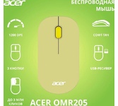 ACER Мышь беспроводная OMR205, радио, оптическая, USB, 1200dpi, зеленый и желтый [zl.mceee.02j]
