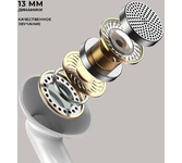 Крепление в ушной раковине Тип конструкции вкладыши Тип соединения беспроводные bluetooth Регулятор громкости есть Тип регулятора громкости на наушниках Кнопка ответа вызова есть Акустические характеристики Тип, акустический закрытые Тип звукоизлучателя динамический Количество драйверов 1 динамический Диаметр головок излучателей 13 мм Материал магнита неодимовый Чувствительность 102 дБ Диапазон воспроизводимых частот от 20 Гц до 20 кГц Характеристики микрофона Крепление микрофона встроенный Подключение Подключение Bluetooth Версия Bluetooth v.5.3 Поддержка профиля A2DP, AVRCP, HSP, HFP Радиус действия 10 м Питание Тип питания базы от USB Зарядка от USB есть Емкость аккумулятора наушников 30 мAч Время работы 6 ч Емкость аккумулятора чехла 250 мAч Время работы с чехлом 20 ч Время зарядки чехла 2 ч Тип зарядного чехла проводной Разъем питания зарядного чехла USB Type-C Питание наушников х встроенный аккумулятор Питание базы х встроенный аккумулятор Особенности Сенсорное управление есть
