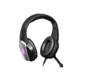 Гарнитура игровая, проводная, импеданс (наушники) 16 Ом, импеданс (микрофон) 2.2 кОм, чувствительность (наушники) 112 дБ, чувствительность (микрофон) 58 дБ, частотный диапазон (наушники) - 20–20000 Гц, частотный диапазон (микрофон) 100–16000 Гц, разъемы USB, 2 x 3,5-мм джек, светодиодная подсветка корпуса, длина кабеля - 2.1 м