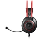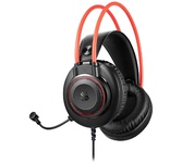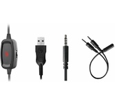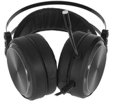 Гарнитура проводная, объемный звук 7.1, чувствительность микрофона - 38 дБ, чувствительность динамика -119 дБ, частотный диапазон - 20Гц-20КГц, тип соединения гарнитуры - USB, гибкий микрофон, управление звуком и подсветкой на проводе, длина кабеля - 2,2 м.