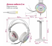 Игровые наушники с микрофоном Redragon Lamia 2, звук 7.1: Виртуальный объемный звук 7.1 - Система обработки звука имитирует работу 7 колонок и сабвуфера, расположенных с разных сторон, создавая точную среду объемного звучания и позволяя полностью погрузиться в мир игры; Подставка для наушников в комплекте; Кнопка выключения микрофона - Просто отключите микрофон, если не хотите, чтобы собеседник или партнеры по игре вас слышали; Светодиодная подсветка корпуса наушников - Идеально для киберспорта; Регулятор