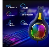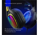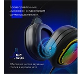 Тип гарнитуры: стерео. Тип, акустический: закрытые. Тип конструкции: мониторные. Тип соединения гарнитуры: проводные USB. Импеданс: 16. Чувствительность динамика: 100. Длина шнура: 2. Крепление микрофона: поворотный однонаправленный. Крепление: оголовье. Регулятор громкости: есть. Тип регулятора громкости: на наушниках. Диаметр головок излучателей: 50. Материал магнита: неодимовый. Выключение микрофона: есть. Шумоподавление микрофона: есть. Тип коннектора: прямой. Подключение кабеля: двухстороннее. Для геймеров: да. Вес (без шнура): 288. Подсветка: есть. Материал амбушюров: искусственная кожа. Цвет подсветки: разноцветный. Коннектор (гарнитура): USB. Габариты упаковки (ед) ДхШхВ: 0.19x0.105x0.223. Вес упаковки (ед): 0.53. Гарантия: 12 мес.. Частотный диапазон: 20 Гц - 20 кГц. Частотный диапазон: 100 Гц - 10 кГц. Цвет: черный. Чувствительность микрофона: -42 дБ. Тип амбушюр: мониторные. Конструктив: микрофон поворотный однонаправленный, крепление - оголовье. Особенности: игровая, с подсветкой. Управление: регу