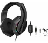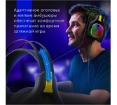 Игровая гарнитура с RGB подсветкой корпуса, оголовья и микрофона, комфортными амбушюрам, гибким всенаправленным микрофоном и отличным качеством звука.