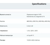 Название . Тип DDR5. Форм-фактор DIMM. Тактовая частота 5600 МГц. CL 32. Особенности игровая.